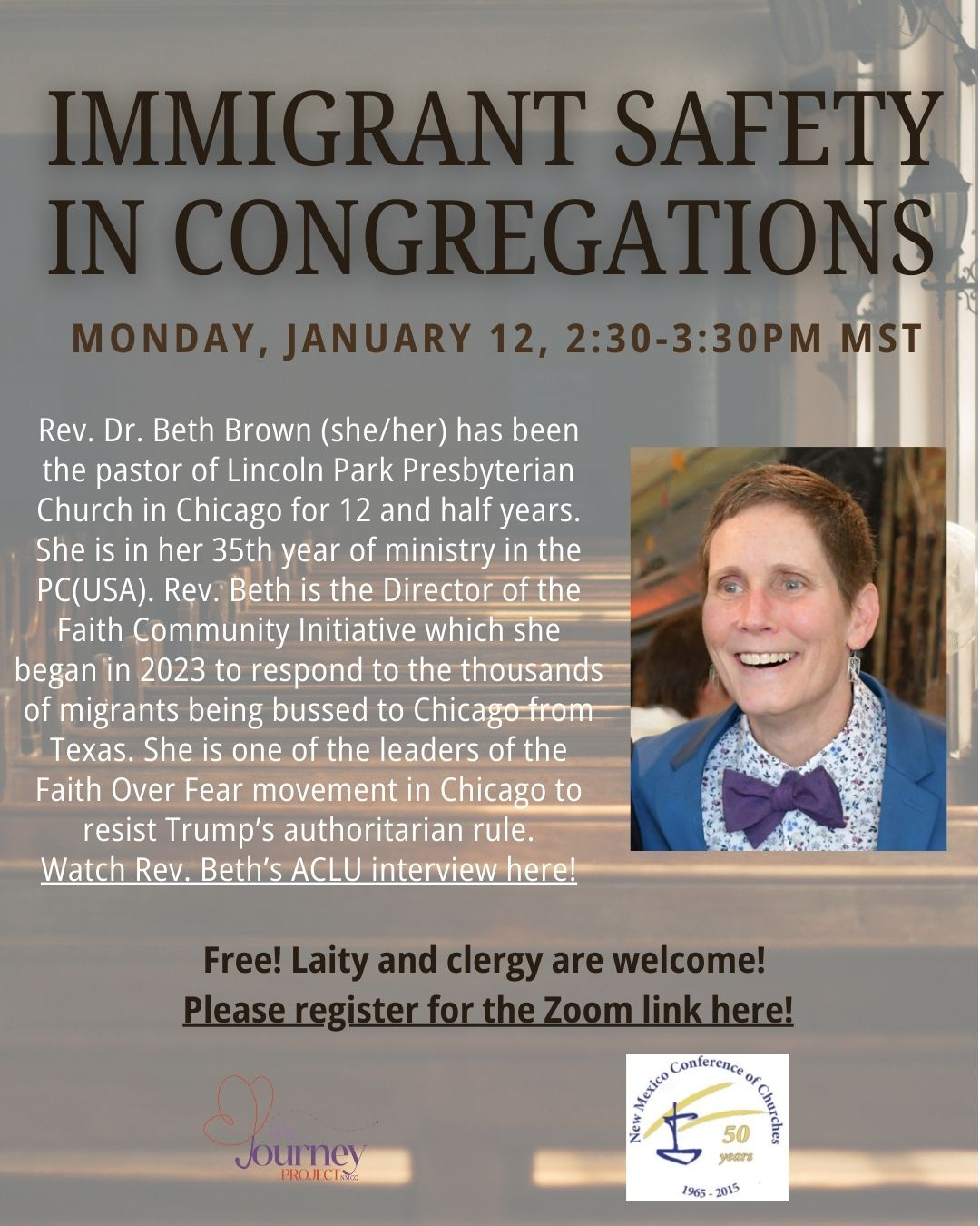 Registration is open for the 2026 Issue Briefing and Bishop's Luncheon, scheduled for Wednesday, February 4th! We are pleased that First Presbyterian Church of Santa Fe, a long-time member of our advocating congregation program, will return as host for the morning Issue Briefing. We will return to the La Fonda Hotel for the Bishop's Luncheon.