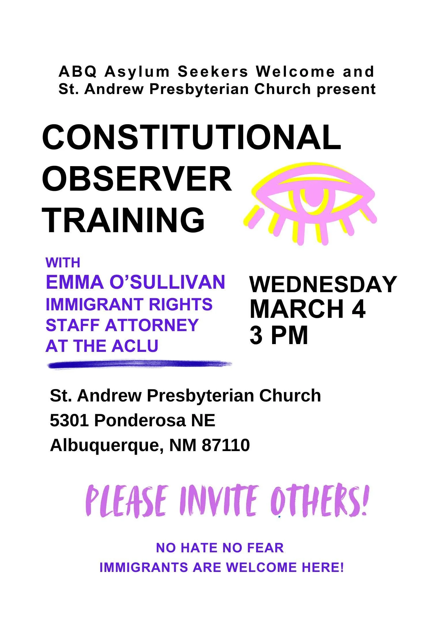 Rapid Response Sanctuary and Community Defense. Sat Mar 29th at First Congregational, 9:30am-12:30pm. Response training that teaches nonviolent techniques and practice strategies for activism today. People of all ages, experience, and abilities are welcome to attend. There is a role and place for everyone.