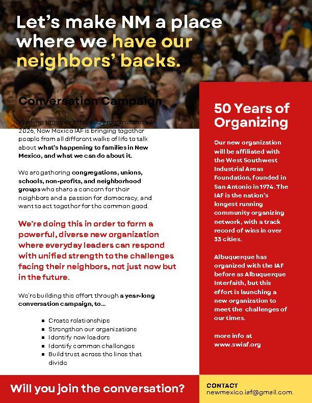 Next weekend: From First Congregational United Church of Christ (our Lenten partners). Rev. Tracy Howe (National UCC) is leading the following Peace & Justice Trainings here in Albuquerque: