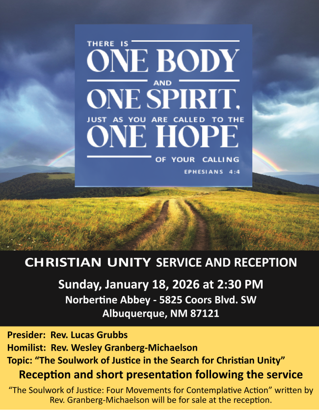 Church Women United, an ecumenical Christian women’s group, invites you to join them in a retreat this Saturday, February 7th at St. Andrew Presbyterian Church (5301 Ponderosa Ave NE) from 9:30-12:00. Pastor Erica Lea-Simka of the ABQ Mennonite Church will lead us in a study of St. Julian of Norwich of the Middle Ages. Her writings, Revelations of Divine Love are the earliest surviving English-language works attributed to a woman. Come join us! For more information, please contact Shirley Nilsson at (505) 463-3657.
