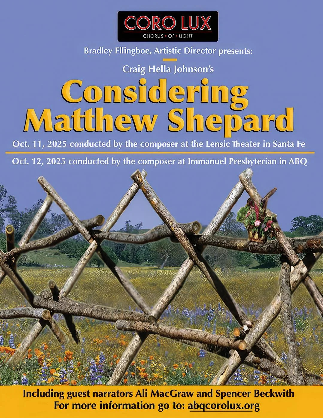 The Coro Lux "family of choruses" presents their annual holiday program at Our Lady of Fatima Catholic Church (4020 Lomas Blvd., NE in Albuquerque) on Sunday, December 15, 2024, at 2 pm and 5 pm. Both concerts are identical. The featured work will be J.S. Bach's Magnificat with full orchestra. Also appearing will be the El Faro Youth Chorus and the Coro Lux chamber chorus, called Luminare. An added bonus on this concert will be the world-premiere of "Luminous Night," a new Christmas work commissioned to celebrate Coro Lux's 10th anniversary season, written by the internationally-known composer Z. Randall Stroope. Musical selections will be interspersed with poetry and readings read by the Rev. Talitha Arnold and the Rev. Kristi Koppel. ~Brad Ellingboe, Artistic Director